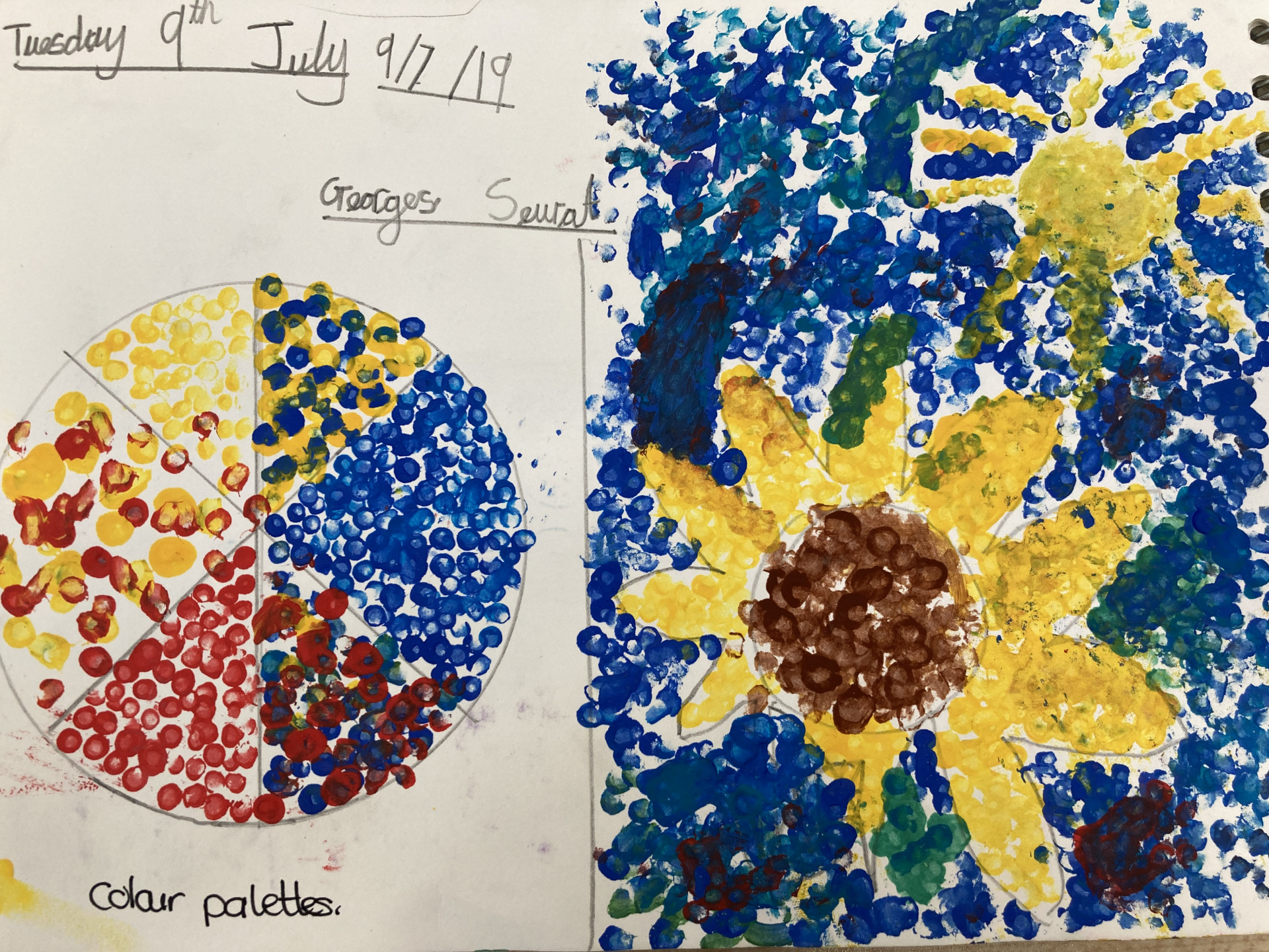 When related to the four attainment areas, progression might be knowledge of a new artist that pupils have learned, it might be ideas recorded in their sketchbook or a new skill they have learned. It could equally be a discussion they have taken part in about their or other’s work. In short, progression is everything the pupils learn in an art lesson. For this reason, our teachers ensure that the learning is sequenced properly and designed according to the needs and age of the children. As children progress through school, they study a broad range of artists, exploring different styles and techniques. Each year, children cover their new curriculum book with the work produced from an artist study.