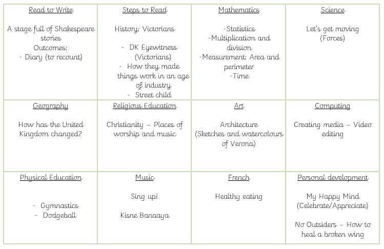 Our PE lessons will take place on a Wednesday afternoons and Thursday mornings. Please ensure that your child has their PE kits with them in school at all times so that they can participate in all of their PE lessons. These lessons are a compulsory part of their curriculum and greatly benefit not only their physical but their mental health and well-being.